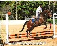 Há dois anos atrás, meu neto Lucas Felipe cursava hipismo numa escolinha de equitação e o levei num domingo a participar de uma prova para escolas no RCG em Brasília. Ele já havia feito provas com a égua que montou na ocasião, a Calábria, e tinha-se saído bem. Mas dessa vez, não se sabe por que, a égua recusou-se a saltar um dos primeiros obstáculos e derrubou meu neto, que também golpeou o solo com seu chicote, muito bravo. E ainda mais irritado ficou com os comentários das meninas de sua turma.