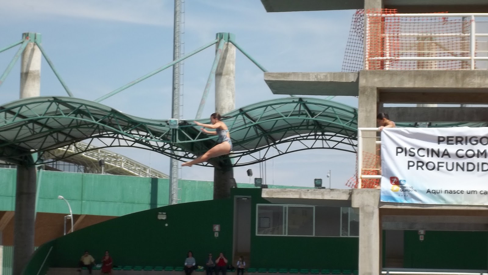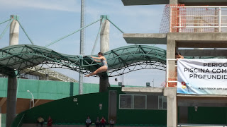 Sobre o dia de hoje, 12.10,2011, é também aniversário de 51 anos do Gama, DF, considerado um bairro de Brasília, e está sendo inaugurada aqui a Vila Olímpica, um centro desportivo bem moderno. Estive assistindo as competições e demonstrações. Houve corrida de 5 km e de 10 km, salto ornamental(consegui registrar numa foto), capoeira, futebol society, e muitas crianças passeavam no local e também brincavam no pula-pula, comemorando seu dia.