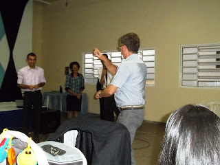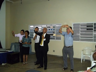 Já pensaram como os surdos entenderiam a mensagem falada se não fosse traduzida para eles? Por isso, existem grupos ligados a esse ministério, como o da nossa igreja, chamado Mãos que libertam. A propósito, o símbolo do ministério são as mãos que traduzem a linguagem sobre a Bíblia aberta. Disse o eunuco da rainha de Candace que viajava na carruagem da qual o evangelista Filipe, mencionado em Atos dos Apóstolos, se aproximou, orientado por Deus: "Como poderei entender se alguém não me explicar?" Lembro deste versículo no dia de hoje, quando há uma celebração do Ministério dos surdos. Hoje à tarde estiveram realizando um culto jovem, que registrei. É um ministério muito especial, pois aproxima da igreja pessoas que precisam se comunicar através de uma linguagem especial, no Brasil a Língua Brasileira de Sinais - LIBRAS. Houve música congregacional em LIBRAS e também música especial - um dueto musical apresentado nessa Linguagem. Uma dinâmica interessante, da qual participei, três ouvintes não conhecedores de LIBRAS deviam tentar se comunicar com três não ouvintes através de gestos, demonstrando a importância da comunicação entre ouvintes e não ouvintes.